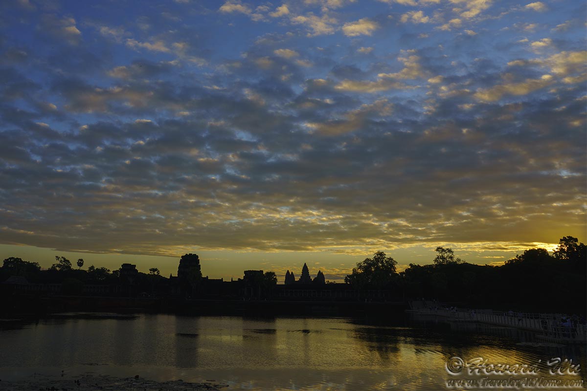 It was a cloudy afternoon, but the sun peered out of the clouds just before it set. We were fortunately to catch our last glimpse of Angkor Wat in the glorious light.