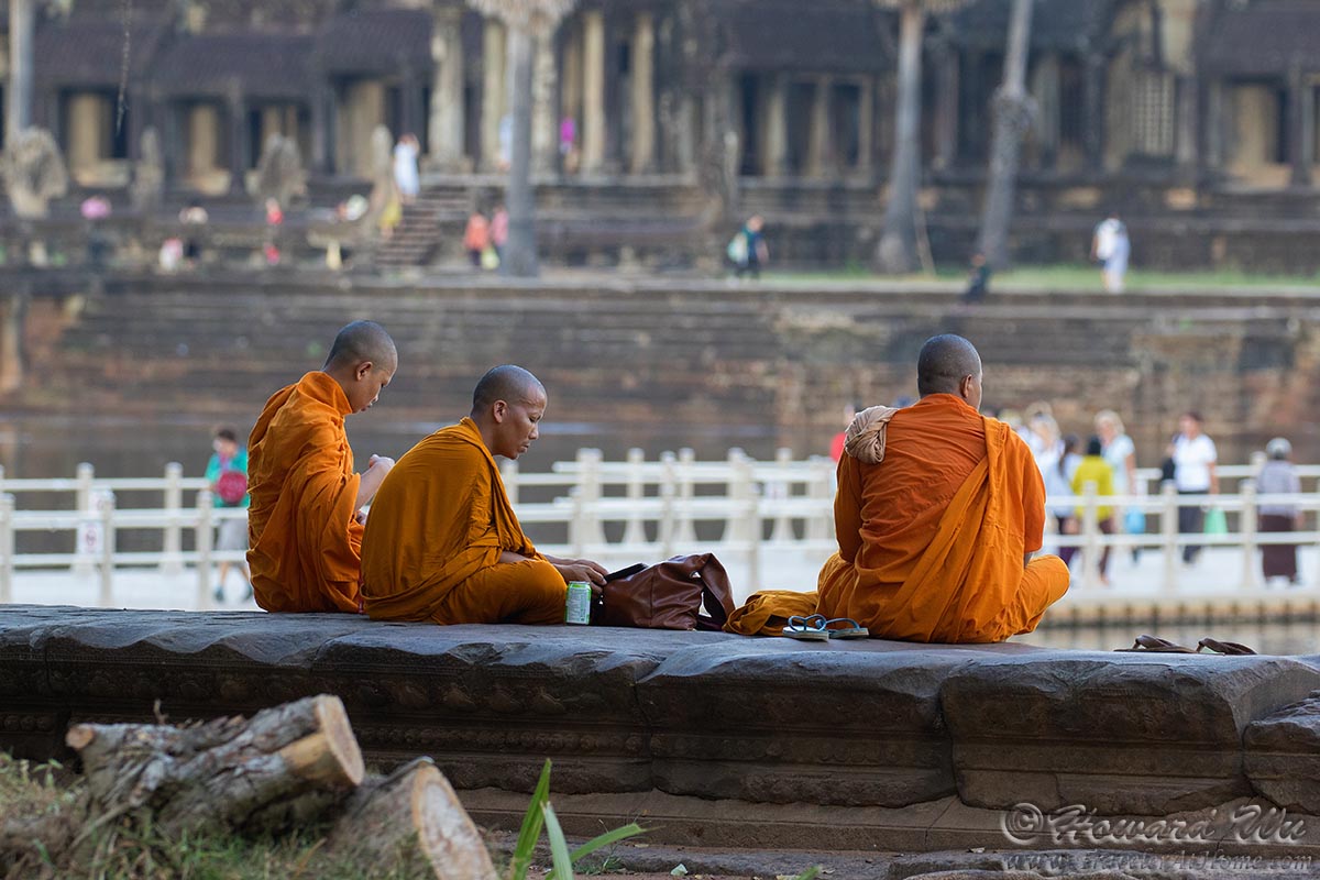 On another day, after we came back from Tonle Sap Lake, we revisited Angkor Wat in the afternoon. A few Buddhist monks were enjoying their simple fare across the moat from the temple.