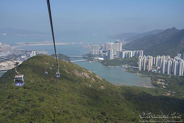 On our second stint (after we came back from Cambodia and before we came home), we made our only excursion in Hong Kong -- to Po Lin Monastery and the Big Buddha. This is a place we have been to before, last time in 2004, but this time we took the Ngong Ping 360 cable car which was not completed last time we were here. I have taken quite a few cable car rides in the world, I must say this is one of the more impressive ones -- the route would make a near-90 degree turn, double crossing a narrow strait between Lantau Island and the artificial island of Chek Lap Kok (where the airport is). The view is quite nice as the car ascended.