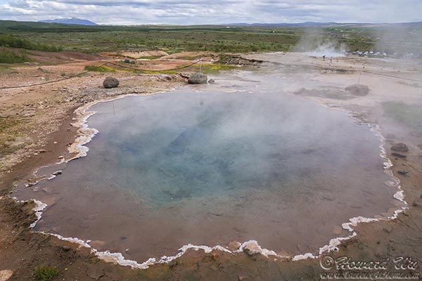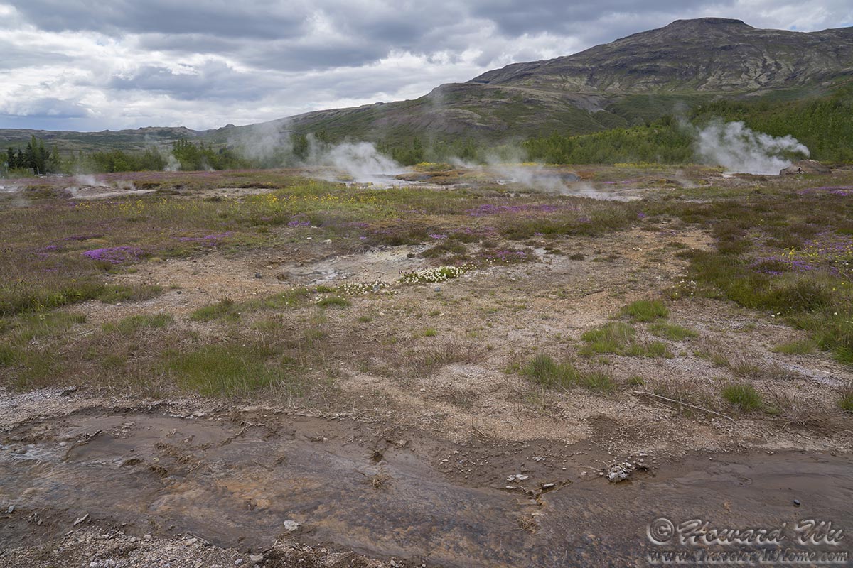 We followed the route and arrived at Geysir, where the -- you guessed it -- volcanic geysers are. This scene reminded us of our previous trip to Yellowstone National Park.