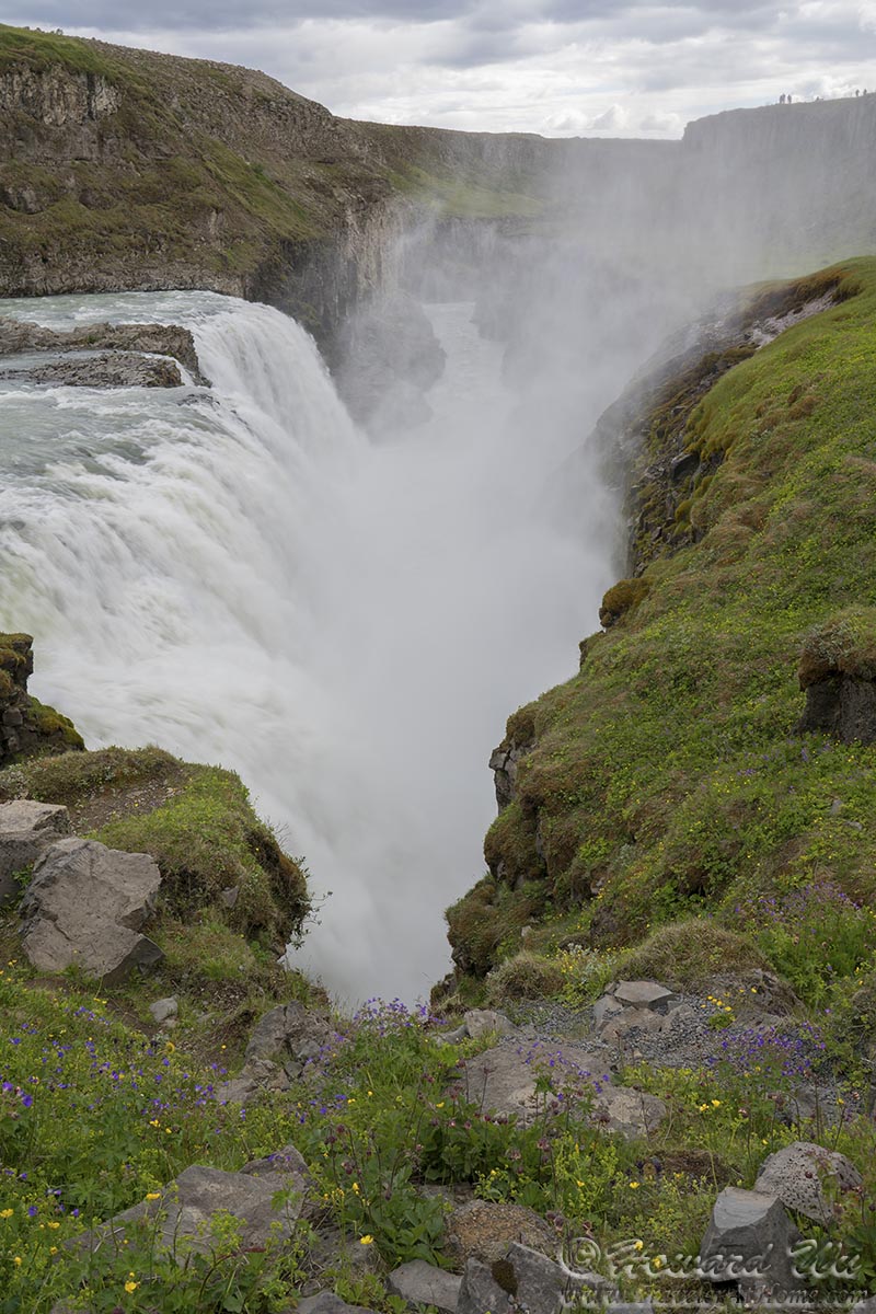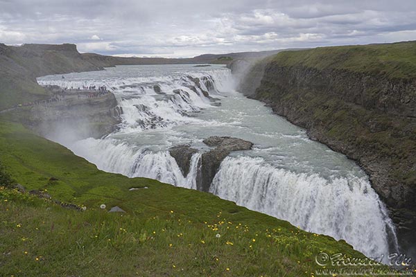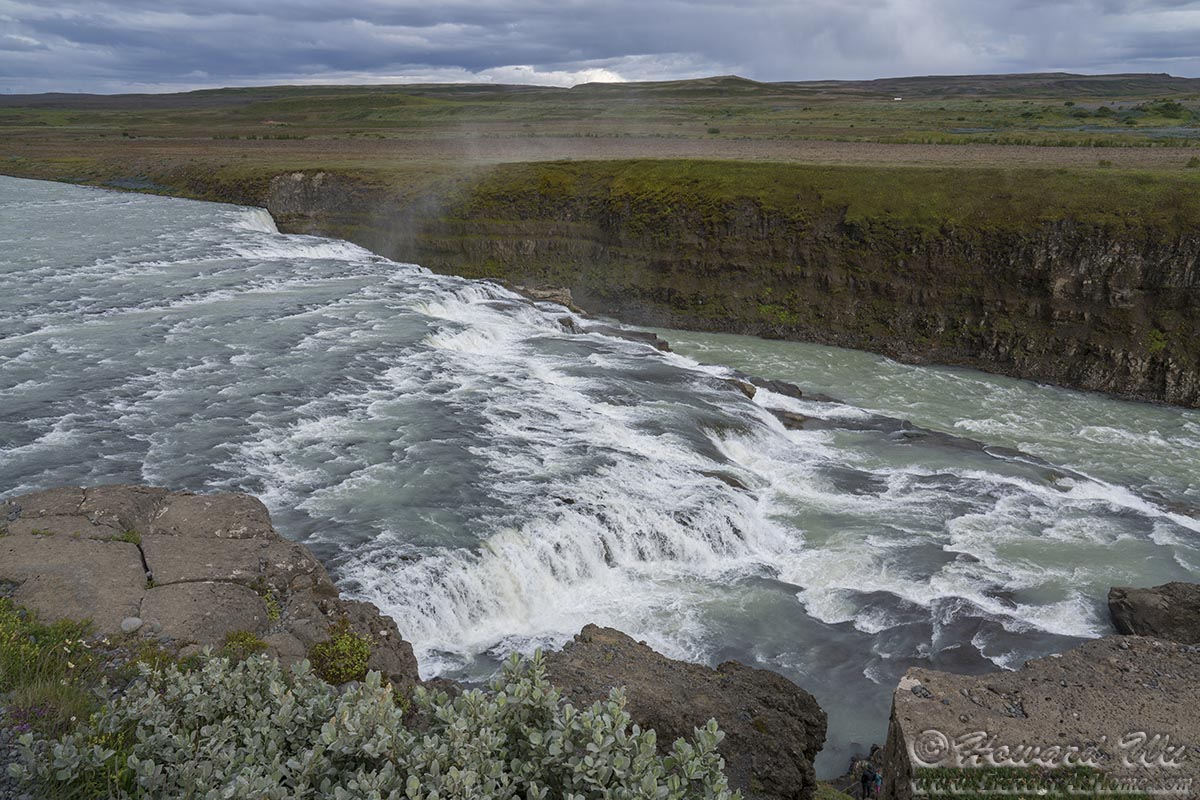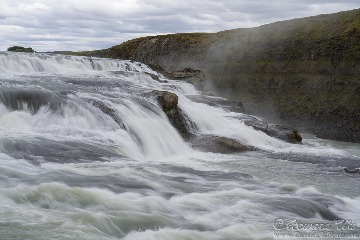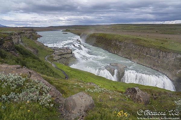 Our next stop was at the mighty Gullfoss waterfall. I have seen many waterfalls before, including the Niagara, but my first sight of Gullfoss took my breath away even on this drearyly cloudy day.