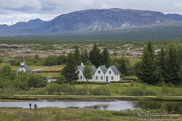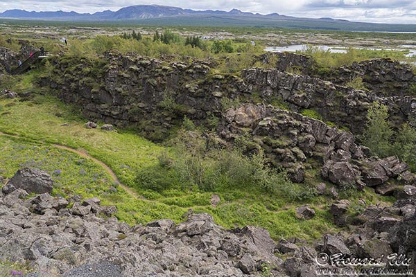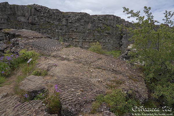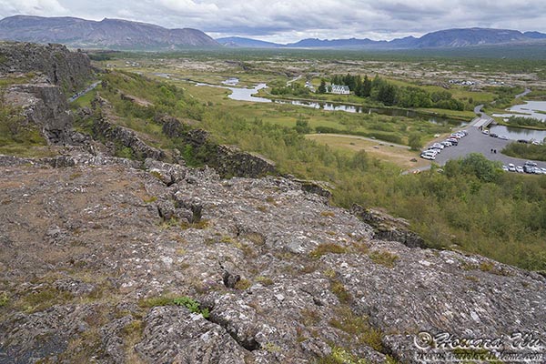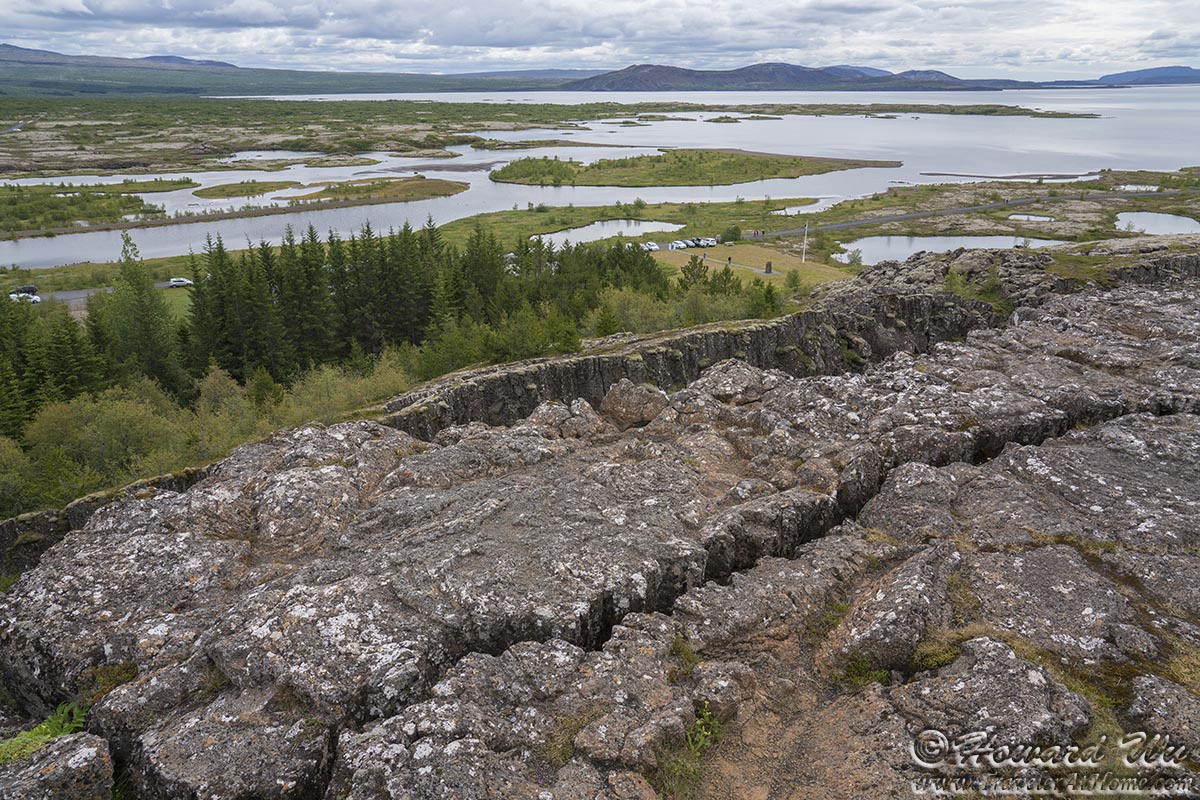 We first drove inland to Lake Thingvallavatn, the largest natural lake in Iceland and our first national park of the trip. This is a rift valley lake, where the rift lays between the Eurasian and North American tectonic plates (much like the rift valley that we saw on the previous day at the Bridge between Continents. We hiked down to the lake shore on this rather cloudy day.