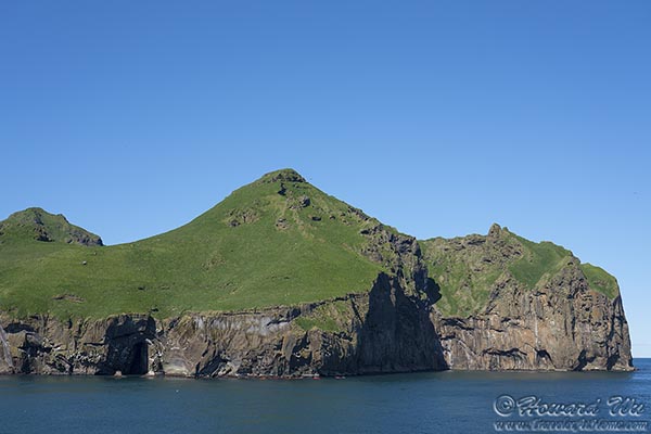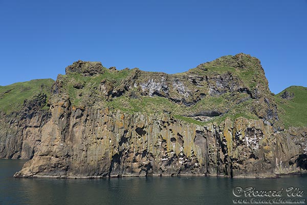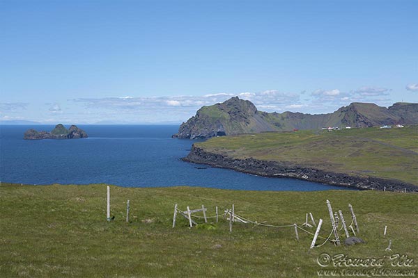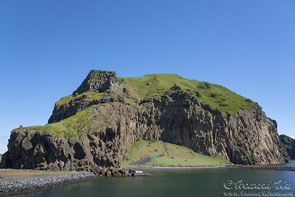 Because we made the decision to not bring our car with us, we had to rely on a tour company to take us to places on the island. This was the only time we took a tour in Iceland, and I found it generally unsatisfactory (see my review here). We were rounded up and taken to various spots on the island. Our first stop was at this cove near a golf course. Several outlying Westman Islands can be seen off shore, including the recently formed and much studied Surtsey Island in the distance (I was reading a book about it on this trip).