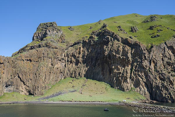 There is a basalt cave nearby, allowing us to look closely at the basalt columns.