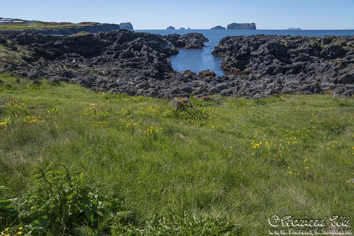 We were taken to a place high on the rocky slope where Atlantic Puffins nest. We had fine views of the coast and the black volcanic sand beaches below.