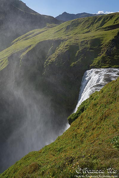 From the top of the waterfall, there is also a view of the glacier-fed Skoga River.