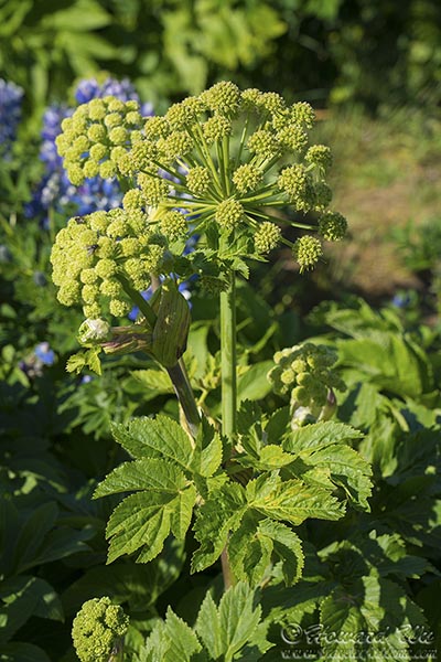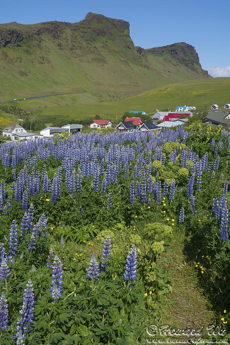 The hills are carpeted with lupine, but the native angelica still clings on to a foothold (for a list of plants in Iceland, see this page).