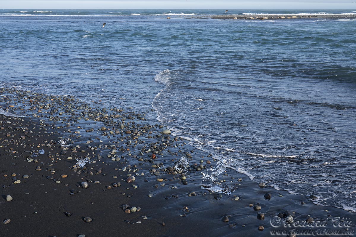 The hike to Svartifoss was one of the longest hikes we did in Iceland (though not too long, about 3 KM round trip) and once we finished it was getting late in the day. We arrived at Diamond Beach late in the afternoon. Because of time of the year (summer) and probably direction of the tide, there were few "diamonds" (ice chunks) on the beach.