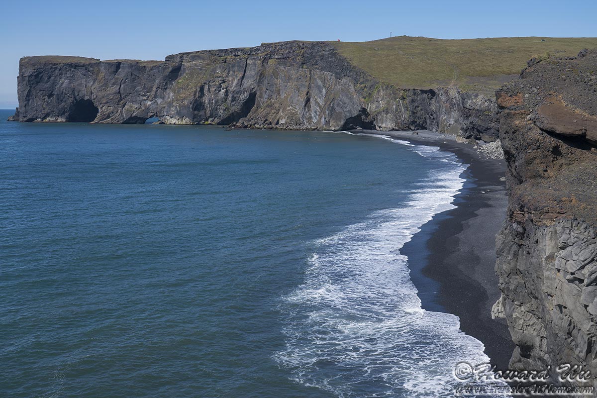 We retraced our steps back to Dyrholaey. Dyrholaey is a massive sea arch (it literally means "door-hole"). The view from the headland is panoramic and breathtaking, and somehow it reminded me of Lagos in southern Portugal (though with different types and colors of rocks) -- on one side, Arnardrangur, or the Eagle Rock, can be seen; on the other, the Dyrholaey sea arch itself.