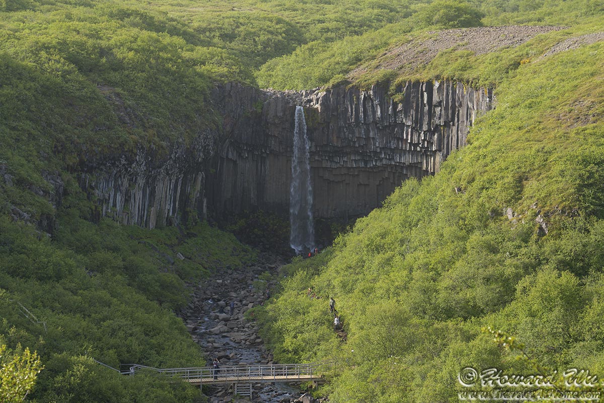 Before long we could see the waterfall running down the sheer basalt column lined cliff.