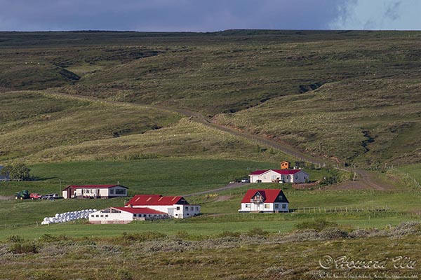 From the parking lot at Godafoss, we looked back at the pretty Icelandic houses on the hill across the highway.