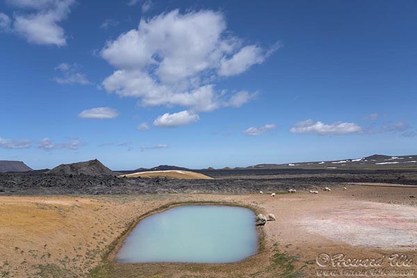 A small flock of sheep went by. This was a little surprising, as there was little vegetation in the field. It was even more shocking to see them drink in the pools; I though the water was toxic, but perhaps they have evolved to cope with the minerals in the water.