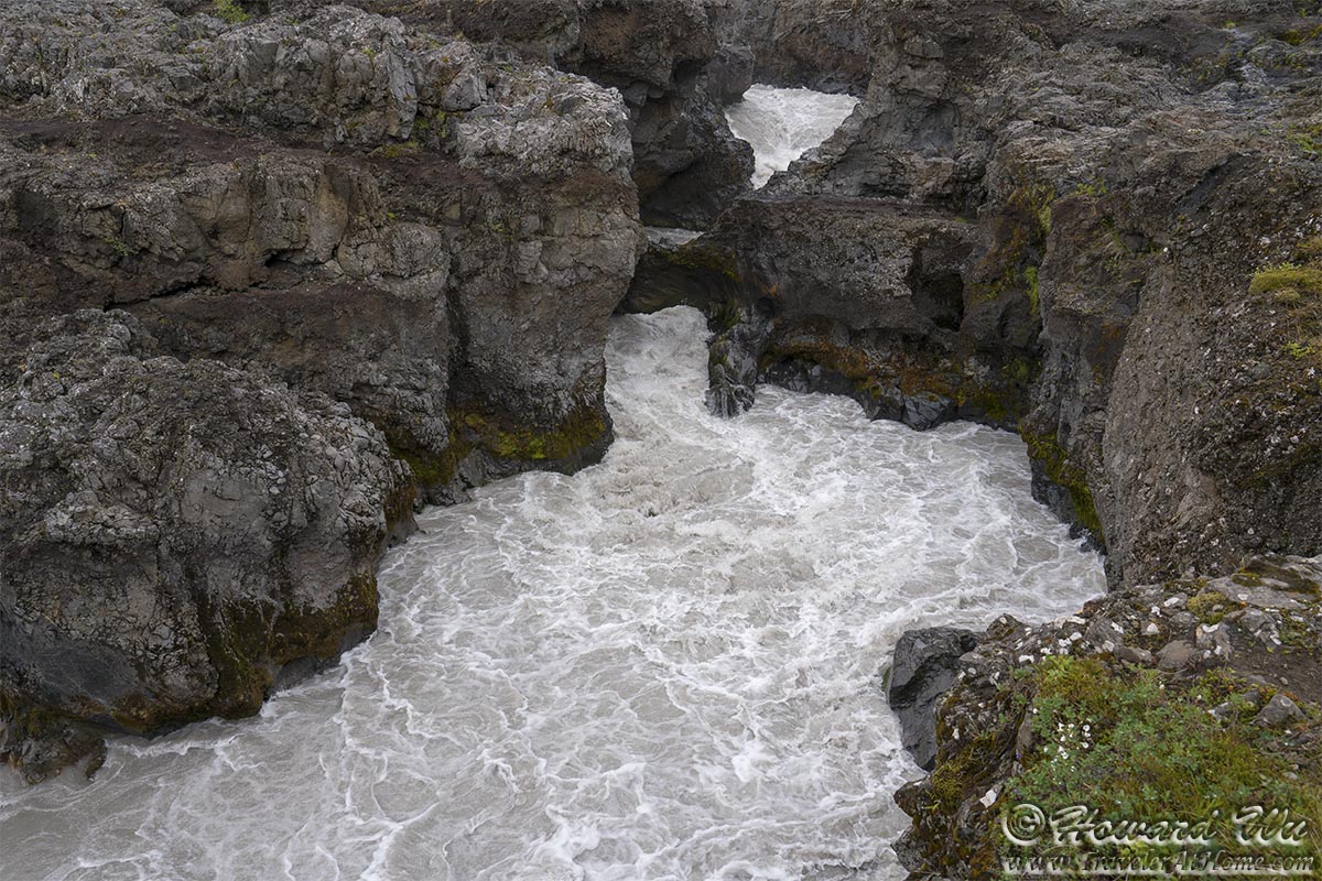 On the way back from Vidgelmir Cave, we stopped at Hraunfossar again. This time we were at a more leisurely pace and walked a short distance to the waterfall Barnafossar upstream.