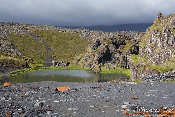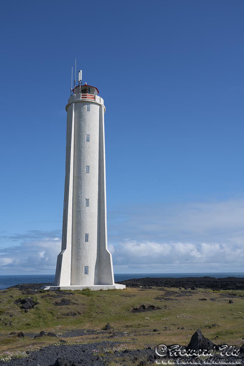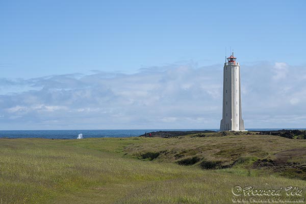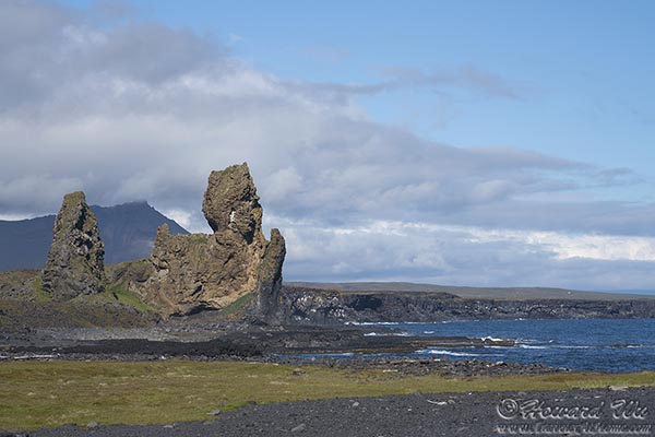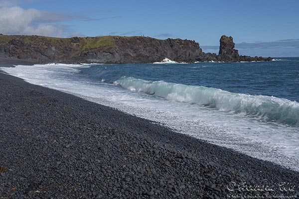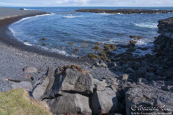 The coast at Malarrif is strewn with volcanic rocks. From here, the fantastic rock formations at Londrangar Cliffs can be viewed from a distance.