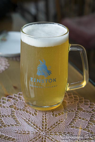 Finally, after such a long and exhausting day of activities, we checked into our guesthouse. We went to a restaurant called Bjargarsteinn mathus for dinner. This turned out to be the best meal we have had in Iceland: (see my TripAdvisor review here). A refreshing Icelandic white ale, Einstok, from Akureyri, capped off this day.