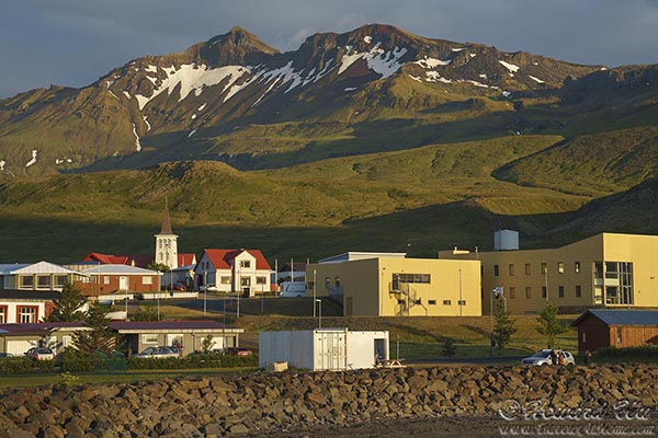 But our day was not yet finished. During dinner, the sky gradually cleared up again. The slanting rays of the late sun gilded the town of Grundarfjordur with gold.