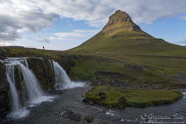 When we first arrived, Kirkjufell was blanked by clouds (its top was hidden). We walked to Kirkjufellsfoss, the waterfall at the foot of the mountain. As we walked, the sun peeked out again and lit the top half of the mountain! Still not the best of lighting, but at least I got a clear shot of the mountain and waterfalls.