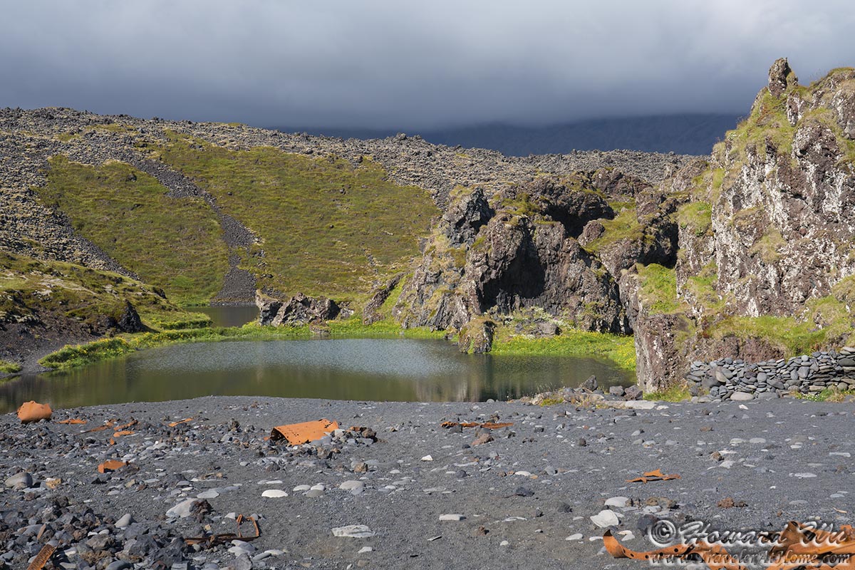 On the beach, pieces of shipwreck were scattered about. These are the remnants of the Epine GY7, a British fishing ship wrecked in 1948. You can see these rusty fragments in front of a lagoon not far from the beach.
