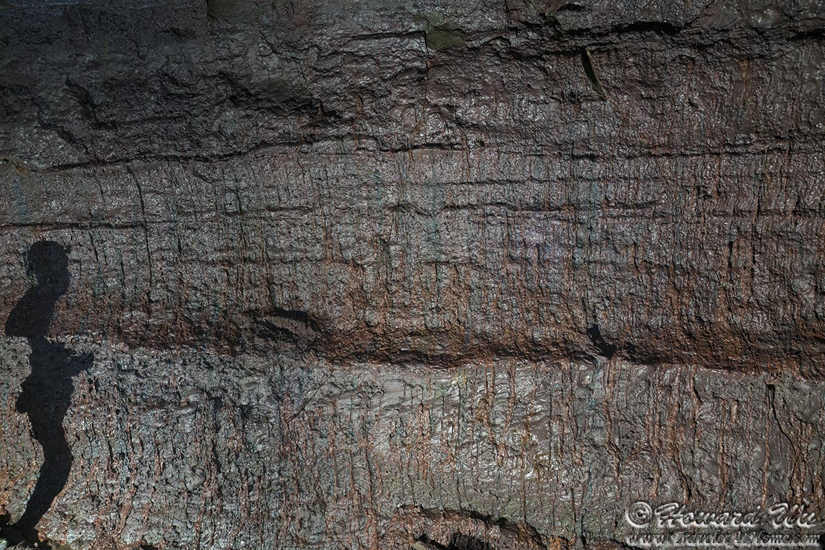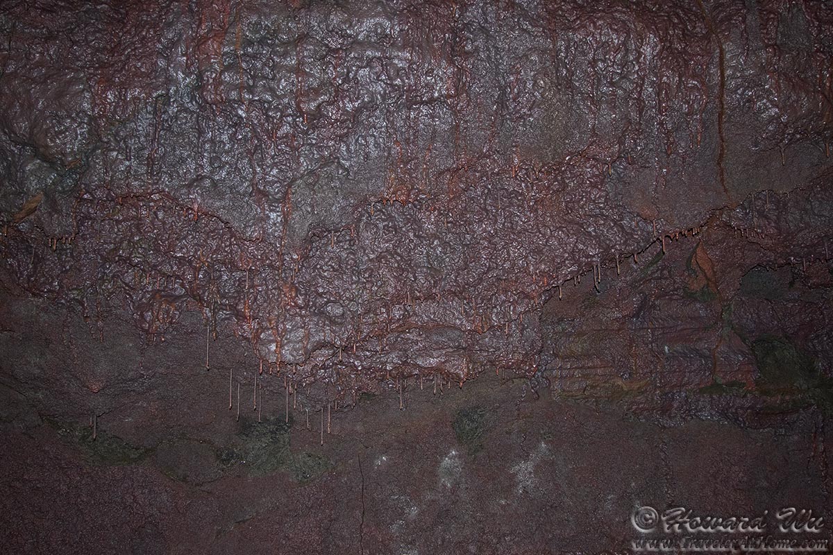 There are also lava stalactites, which were formed when the lava was cooling. I don't think I had seen these before (I have seen limestone stalactites many times). The shadow on the left of the second picture below is that of our guide.