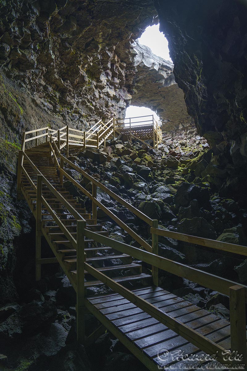 However, we had to hurry on to Vidgelmir Cave for our tour. The cave is indeed very large, we descended the stairs through the cavernous opening.