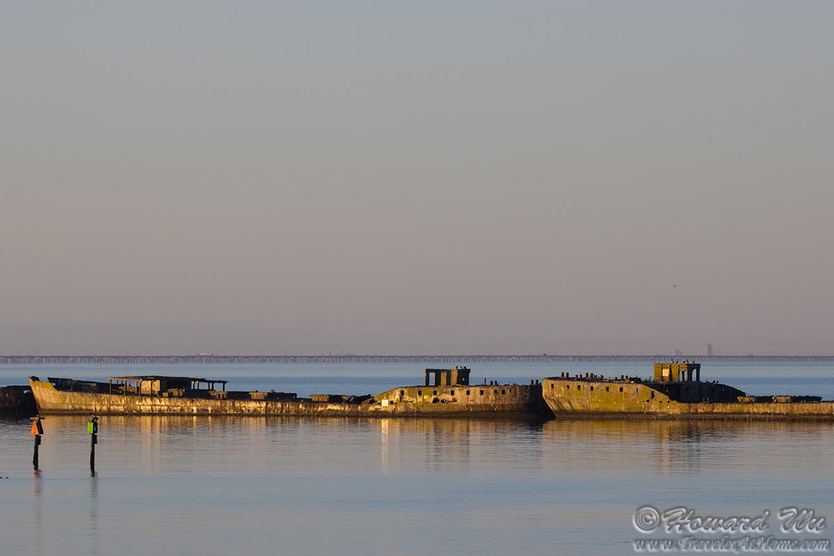 Kiptopeke is on the eastern shore of the Chesapeake, so it has a clear view of the western horizon. With the Ghost Ships of Kiptopeke conveniently placed in the foreground, it offers excellent sunset views. We enjoyed such views for several evenings.