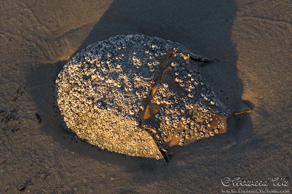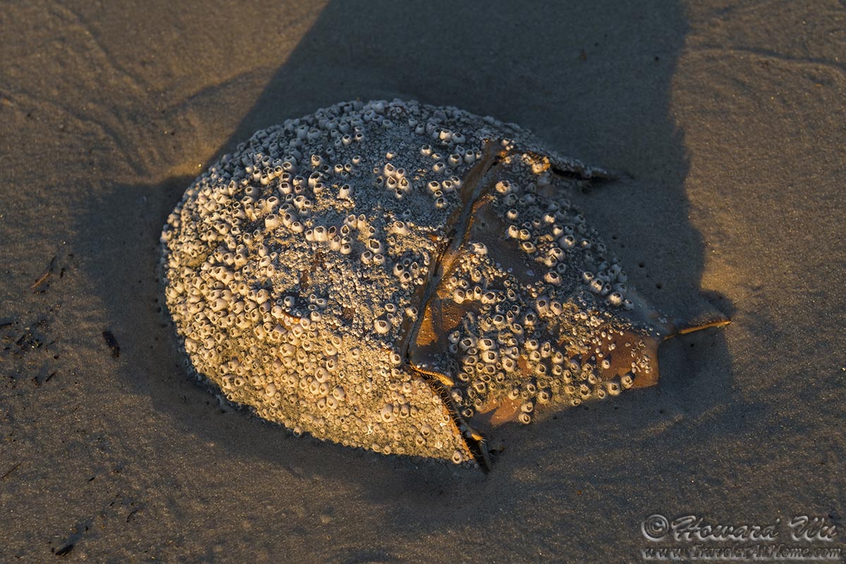 The beaches at Kiptopeke are not very wide, but they offered pleasant walking. Ghost Crabs scurry in the sands, and one day we found a barnacle-encrusted Horseshoe Crab shell.