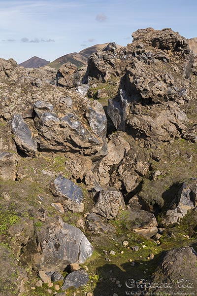 We walked through the lava field again, this time I paid attention to the lava rocks. Their smooth broken surface glistened in the sun, which to me has the texture of congealed hard candy.
