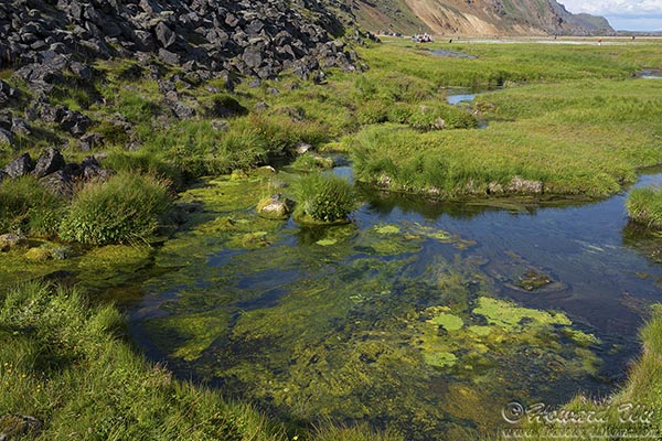 It is an area that is most difficult to get to during all our wandering in Iceland -- there are long stretched of unpaved roads, and the road that leads fhe final 30 KM or so to the area is an F-road, not just unpaved, but very primitive (not sure what F stands for, but it might be a verb). But with care we got there without incident. We parked just across the river from the valley (you could drive across if you had a high-clearance vehicle), and walked over. It was a magnificent day indeed.