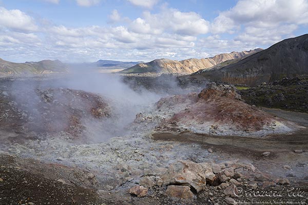 Landmannalaugar is a -- unsurprisingly -- geothermal area, and as we moved through the rhyolite canyons, fumaroles appeared.