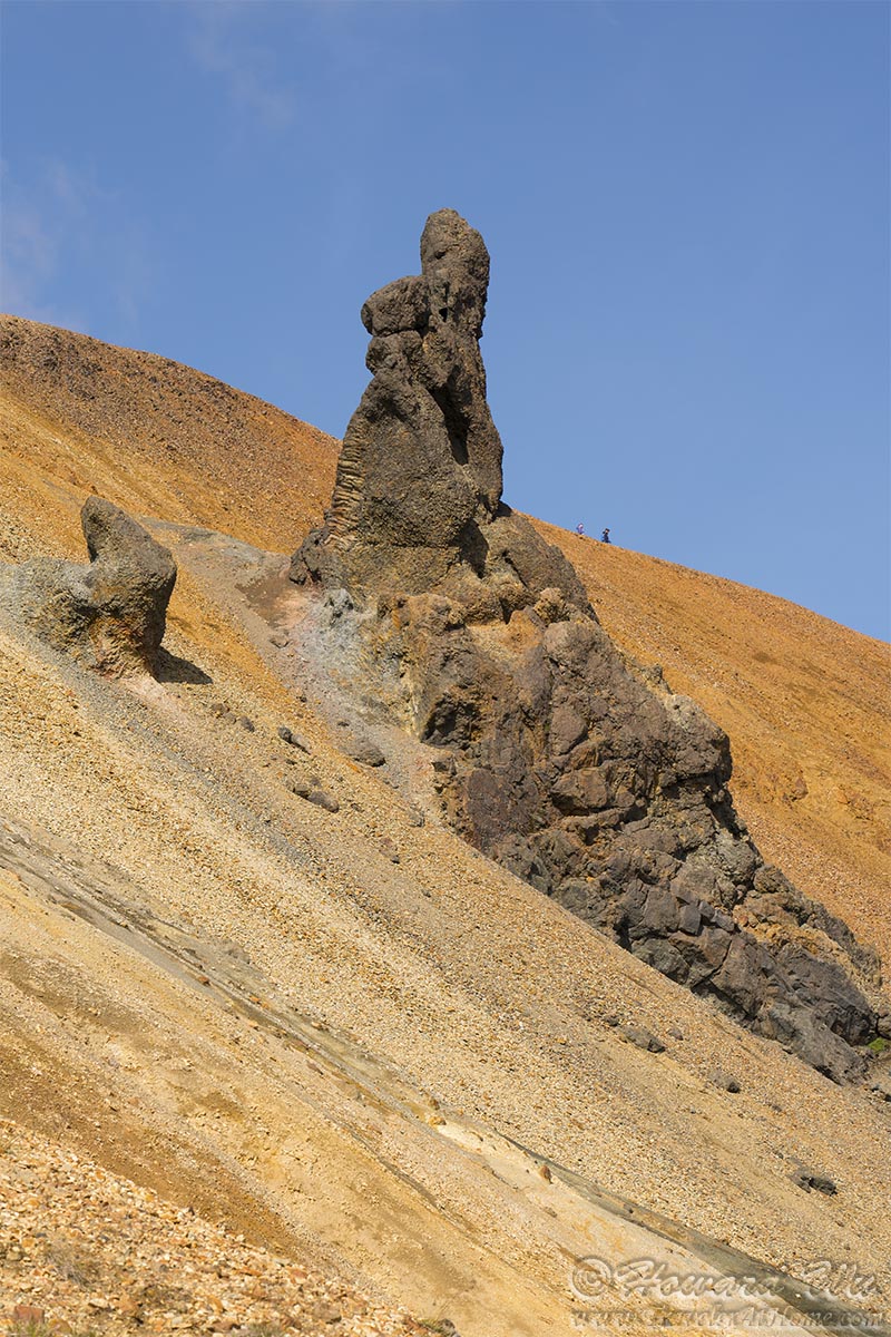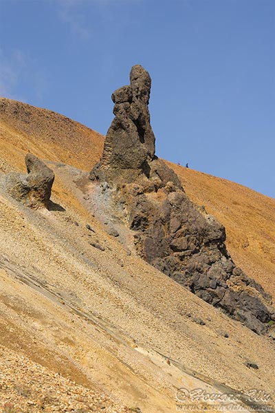 We started climbing the palagonite mountain. A rock "needle" sticks out from the side of the mountain, it is likely the cooled lava, but it rather looks like a hand gesture. It makes wonder what Iceland really thinks of us tourists.