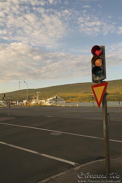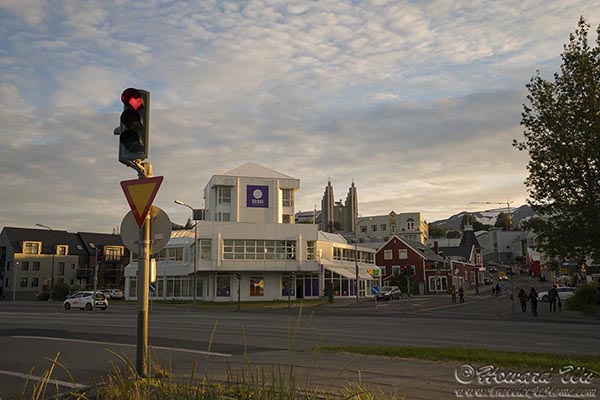 Akureyri has the most unique traffic lights: the red light is heart-shaped. We saw them on our trip two years ago, and now we had ample time to take pictures of them.