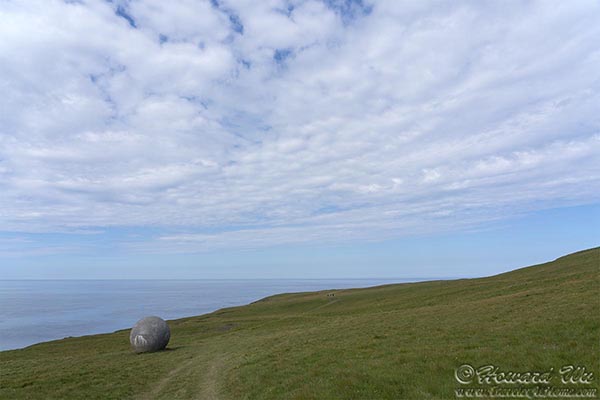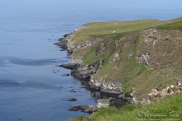 The rail took us to the northern end of the island and to higher ground. Soon the dramatic cliffs with nesting Atlantic Puffins appeared, and in the distance, the "Arctic Sphere" was in view.