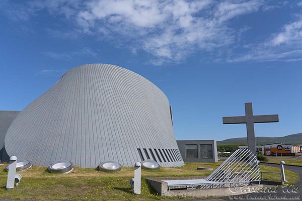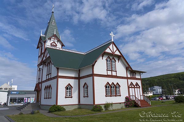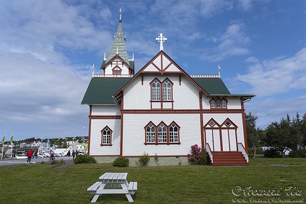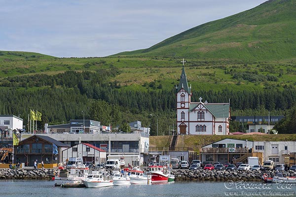 Now we were past the halfway point of the trip, but we were still at the "top" (northern edge) of Iceland. The advantage of having taken a trip two years before manifested itself: now we could skip the Lake Myvatn area which we visited two years ago and take different detours. And the one we took this time was Húsavík, the location for the movie Eurovision Song Contest: The Story of Fire Saga (at the time, I did not even know the movie, which I am not a fan of and which was a good thing -- we could visit it without any preconception).