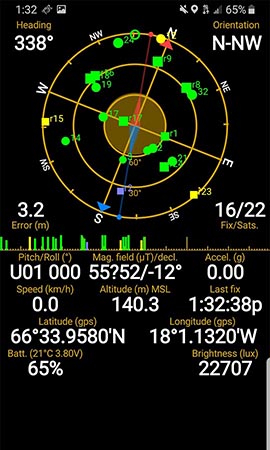 Because the "Arctic Sphere" (as I call it) is moved at set intervals, and the Arctic Circle is constantly drifting, to make sure that we actually crossed it, we walked farther north, to the northern tip of the island. I took GPS readings on my phone to further confirm it. And it is confirmed! The Arctic Circle has a latitude of 66°33′48.9″ (this itself is not fixed but constantly changing), and my phone recorded 66°33.9580′ (nearly 66°34'), it is safe to say that we crossed it.