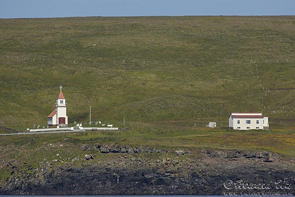 As the ferry left Grimsey Island, we looked back from the deck. The Grimsey Island Church bid us farewell. Sadly, just the month after our visit, it was destroyed by fire.