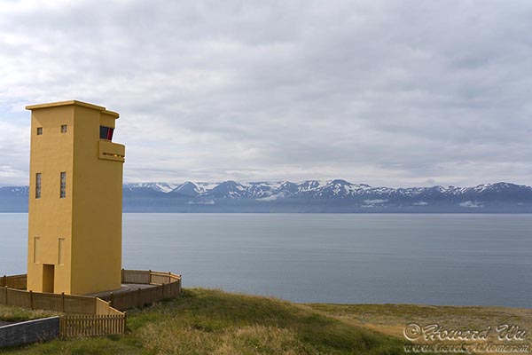 At last we reached the headland just before Siglufjörður. We stopped there to take in the scene. From there we could see the Saudanes lighthouse standing guard at the tip of the Trollaskagi Peninsula.