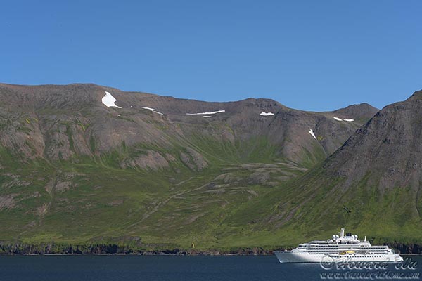 As our ship pulled out of Dalvík, we admired the seascape. We moved past Hrísey Island, then the small island of Hrólfssker, where a lighthouse stands.