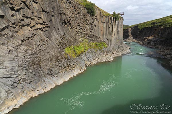 This was our last day in northern Iceland before veering south. This day's highlight was Stuðlagil Canyon, to which we had to backtrack our steps some ways to reach. The basalt columns lined canyon looked surreal, and it was somewhat difficult to get to (we had to drive on long sections of unpaved road). But it was well worth the effort.