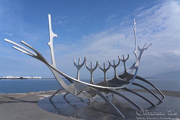 We made our stop at the Sun Voyager sculpture by the water front. The skeletal sculpture is modeled after "Solfar", the Viking long-ship, and symbolizes Iceland's heritage.