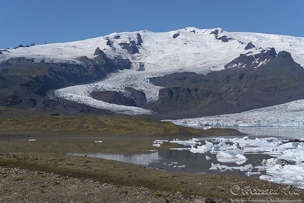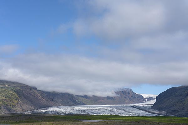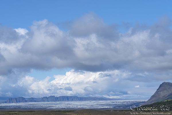 "Across the street", that is, on the other side of the Ring Road (Route 1), there was Vatnajökull, the largest glacier in Europe outside Greenland. Skeiðarárjökull, which is an outlet from the same massive glacier, also almost spilled down to the road.