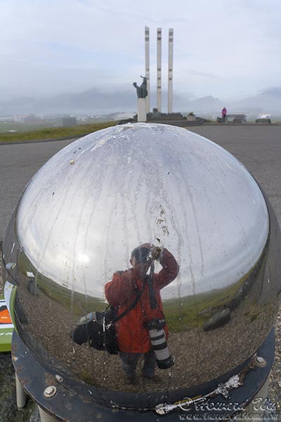 We returned to Hofn and walked around the harbor. I took picture of "the globe" at the harbor, a stark contrast from last time.