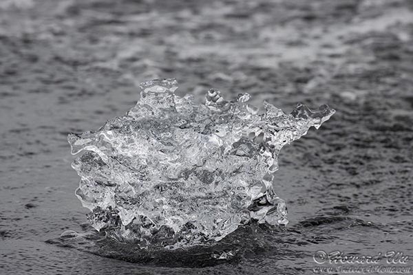 I took a picture of an "diamond" (glacier ice) on the beach. What's interesting about this picture is that it is a color photograph, but with the black volcanic sand beach and gray sky, there is almost a complete lack of colors (except for black and white) in the picture. It was a monochromatic world on Diamond Beach on this day.