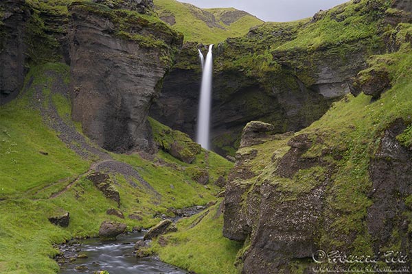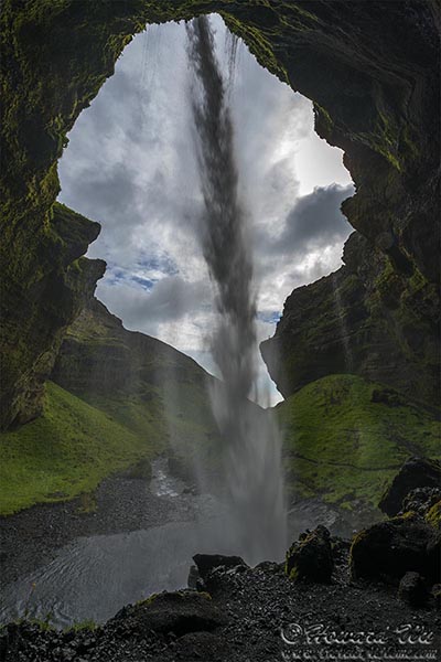 The clouds thickened in thea afternoon. We made our way to Kvernufoss, another waterfall that you can walk behind of.