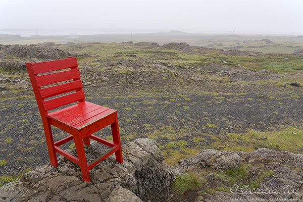 In the morning, we backtracked to "Red Chair", a quirky "landmark" of sort in Iceland: apparently someone (I don't know who) decided to put a red chair on a rock, and it became an attraction; it even shows up on Google Maps. Whatever it is, we made a stop and checked it out (it's just a chair, as it turned out).
