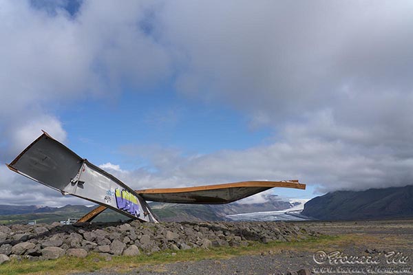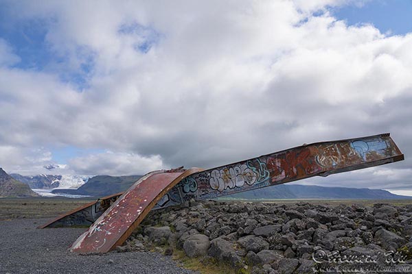 We stopped at Skeiðará Bridge Monument, the bridge ravaged by the 1996 volcano eruption and subsequent flood from melted glacier ice. Two years ago, I took a picture at the exact location.