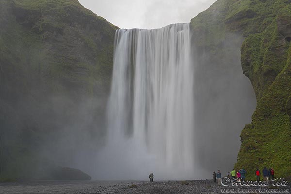 After checking into the guesthouse just outside Vik, we rested for a bit, then headed out again. First we stopped at Skógafoss. It was cloudy, I took a picture, but it was a far cry from the rainbow-decorated one I took two years ago.