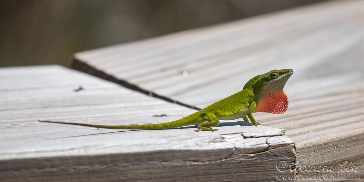 We took a hike at Hammock Hills Nature Trail. The trail was festooned with poison ivy, and we picked our steps carefully (luckily, we did not brush them). We found a Green Anole along the trail which added to the highlight of the day.