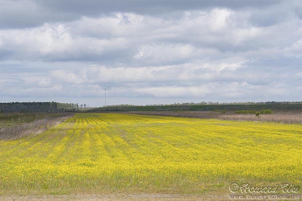 It seems that the refuge leased out fields to local farmers. Some of the fields have rapeseed flowers blooming, adding some colors to this cloudy day.