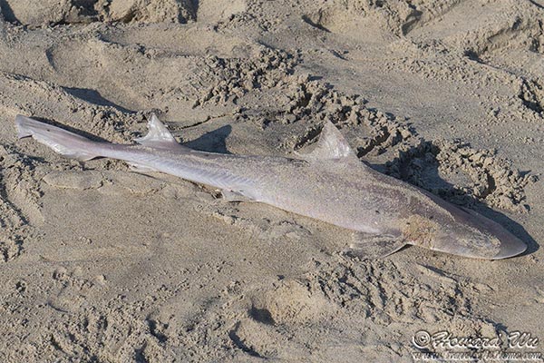 On the beach, we found a shark - it was dead at this point, but not for very long. It is not clear whether it was stranded by itself, or was discarded by careless fishermen.
