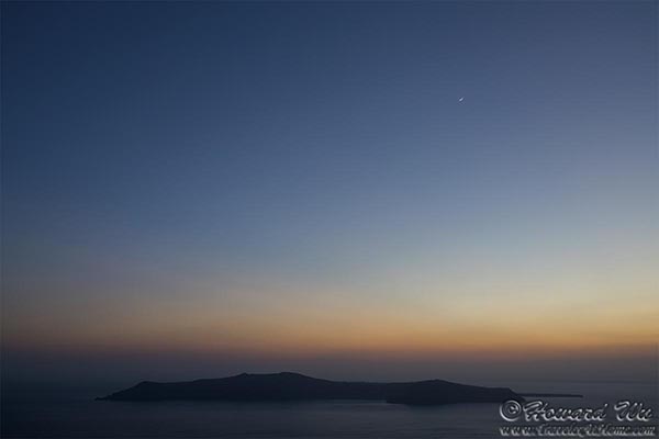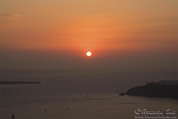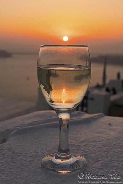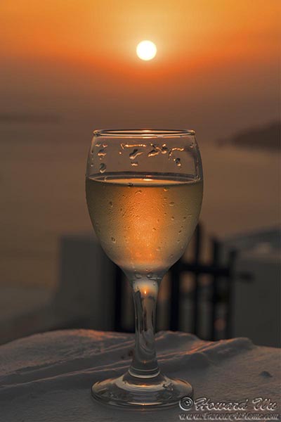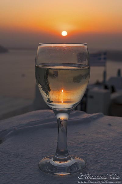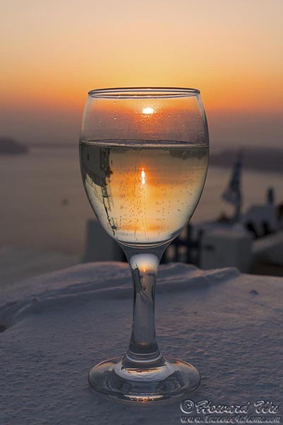 The hotel has a nice view of the caldera and especially of sunset. For two consecutive evenings I played with my wine glasses at sunset.
